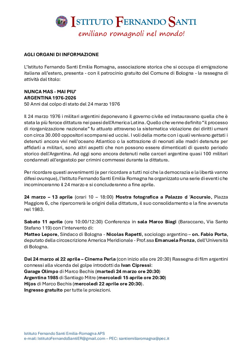L’Istituto Fernando Santi , L’Anpi e l’Arci La Serra di Recanati presentano il 6 marzo alle ore 18,00 presso il Circolo Arci La Serra in Piazzale B. Gigli 3, il film di Enrico Blatti “L’Angelo di Buenos Aires”.